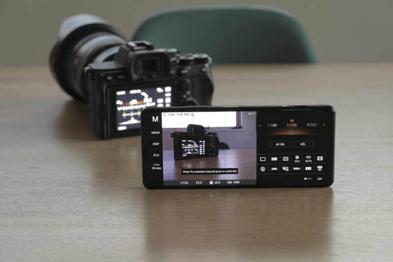 The mobile can also be used as a monitor for a camera, either via USB or an HDMI/USB dongle, and it can also be connected to Sony’s 3.5 inch Vlog Monitor and a microphone via the 3.5 mm headphone jack. All this can be mounted on the handle from Sony, which is called GP-VPT2BT, and then you have a compact camera tripod for video and still images, which you control from the GP-VPT2BT handle.