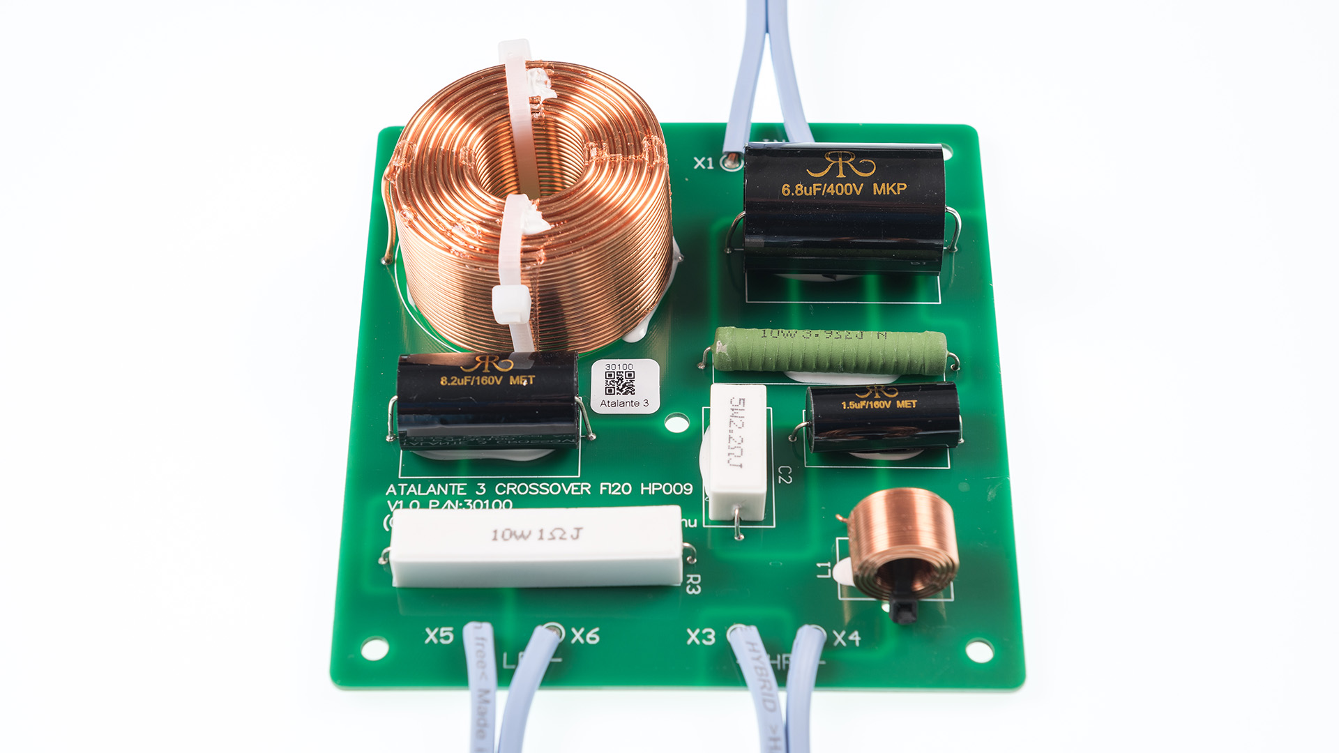 The sub-filter is an absolutely neat 12 dB/octave filter with just as many components as needed, but no than that. And the parts are of good quality. The cabling is Van Den Hul Skyline Hybrid. In other words, these are a pair of speakers that bear scrutiny.