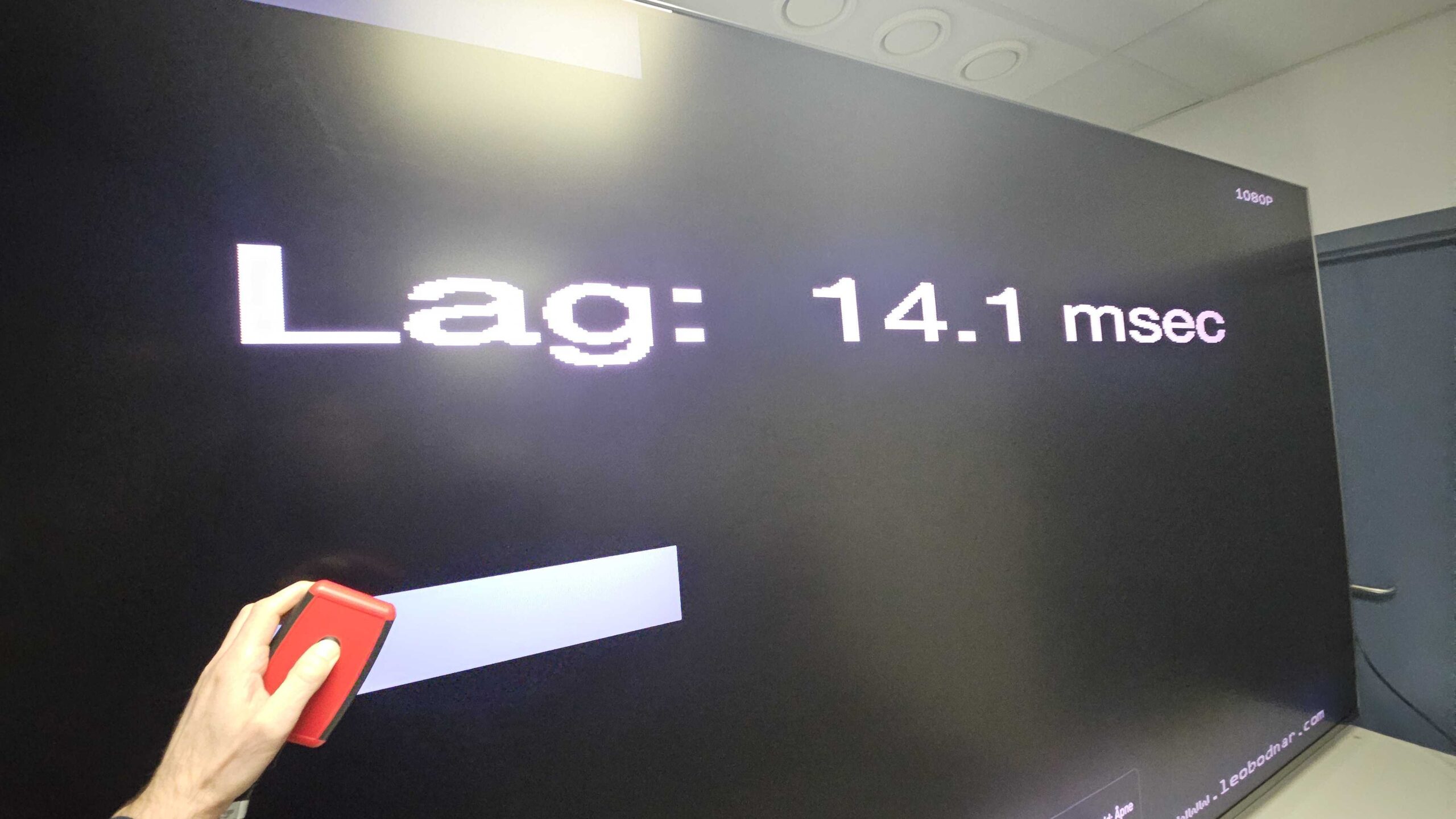 Samsung has equipped the MR95F with the latest gaming features, including Game Bar, VRR and fast gaming mode. Here we measured input lag as low as 14 milliseconds.