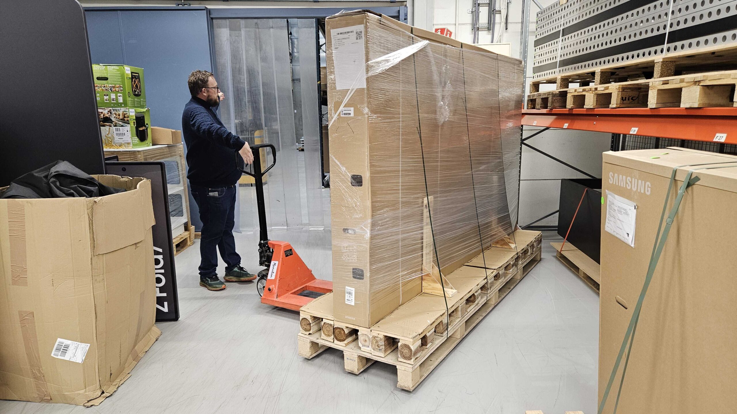 Needless to say, this TV is big, but it’s worth considering the packaging. The TV comes on a double Euro pallet and weighs around 120 kilos including packaging. If you live high up in a penthouse apartment, you’ll probably need a crane – it’s far from certain that the elevator is big enough.